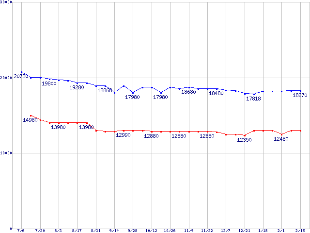 WD Raptor (10000rpm,SATA 1.5Gb/s,16MB,NCQ)の最安値推移