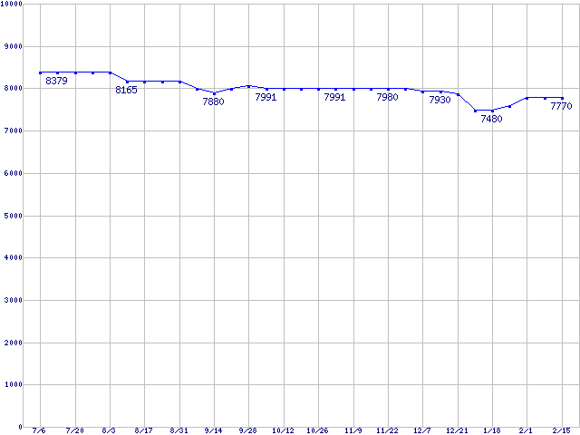 | WD Caviar[Special Edition] (7200rpm,Ultra ATA/100,8MB)の最安値推移 | | | (2006年7月6日~2007年2月15日) |