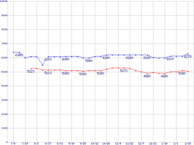 Barracuda 7200.10 (7200rpm,SATA 3Gb/s)の最安値推移