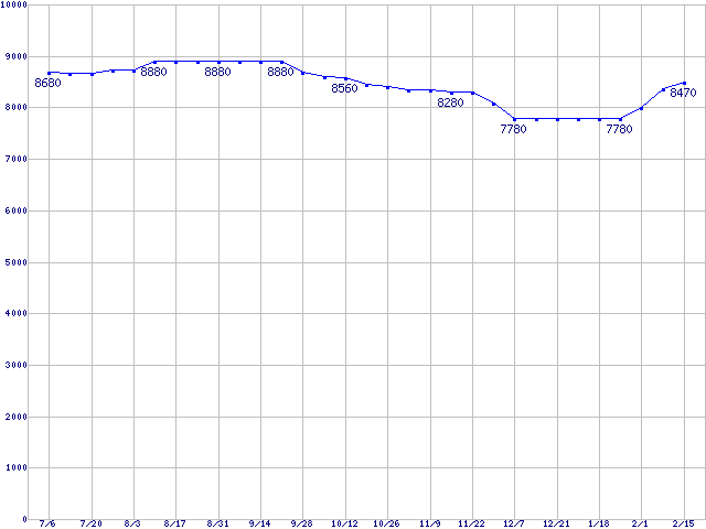 | DiamondMax 10 (7200rpm,Ultra ATA/133,RoHS指令準拠)の最安値推移 | | | (2006年7月6日~2007年2月15日) |