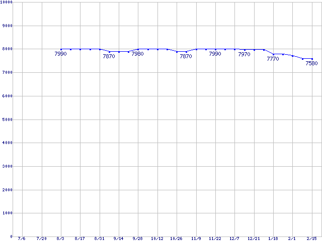 | SpinPoint (7200rpm,Ultra ATA/133,8MB)の最安値推移 | | | (2006年7月6日~2007年2月15日) |