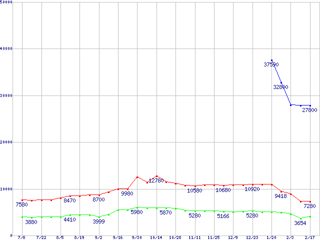 PC2-6400(DDR2-800) DDR2 SDRAM DIMMの最安値推移