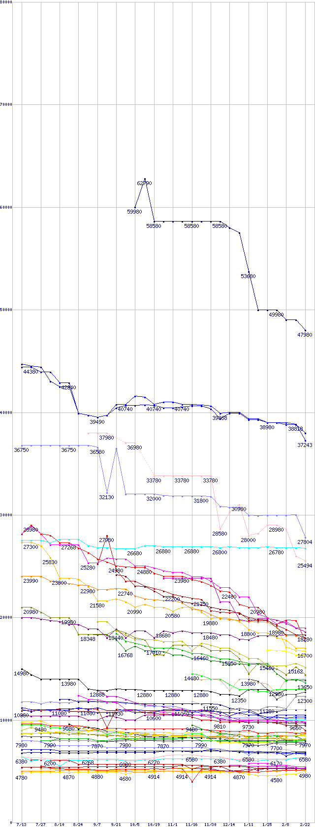 | HDD主要製品の最安値推移 | | | (2006年7月13日~2007年2月22日) |