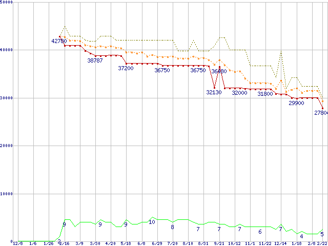 | WD1500AHFD (150.0GB)の価格推移 | | | (2005年12月8日~2007年2月22日) |