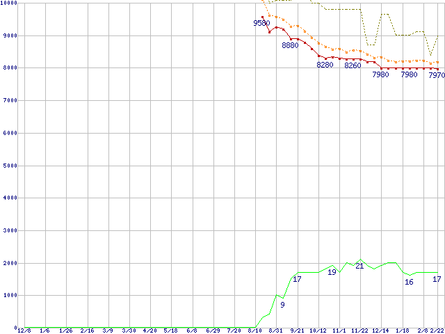 | HDT725025VLAT80 (250GB,8MB)の価格推移 | | | (2005年12月8日~2007年2月22日) |