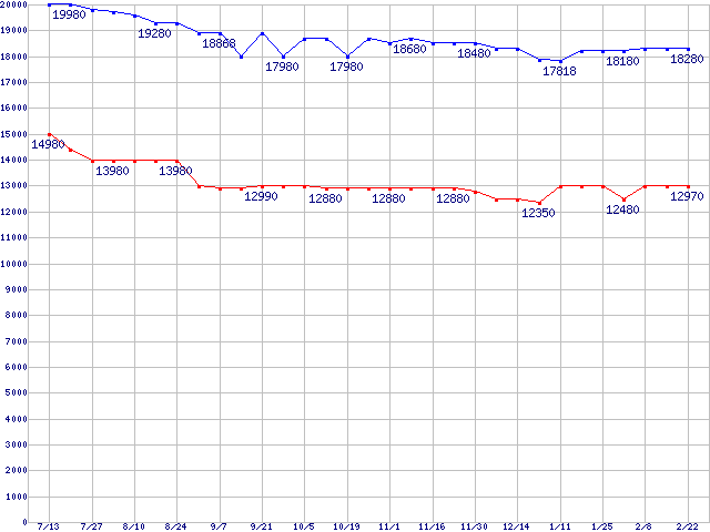 WD Raptor (10000rpm,SATA 1.5Gb/s,16MB,NCQ)の最安値推移