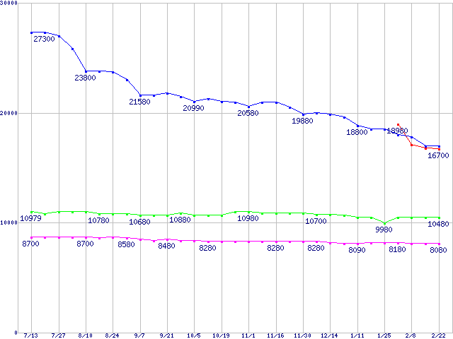 WD Raptor (10000rpm,SATA 1.5Gb/s,16MB,NCQ)の最安値推移