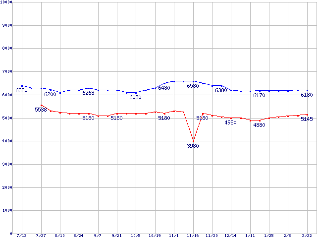 Deskstar 7K160 (7200rpm,SATA 3Gb/s)の最安値推移