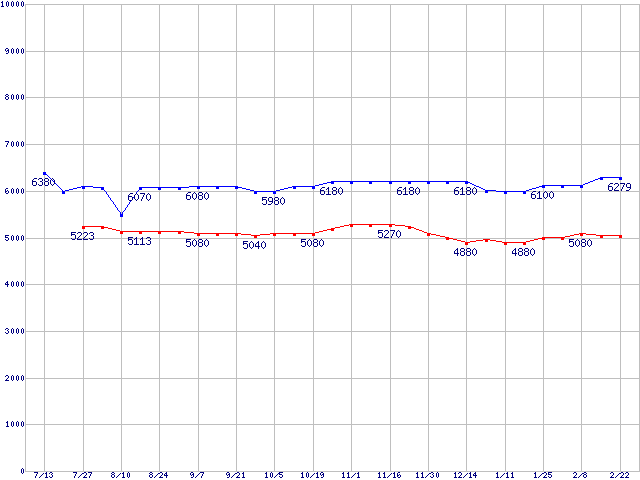Deskstar 7K160 (7200rpm,Ultra ATA/133,8MB)の最安値推移