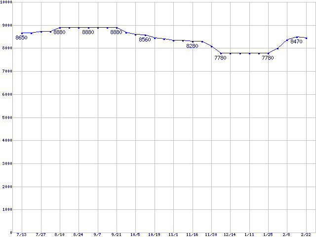| DiamondMax 10 (7200rpm,Ultra ATA/133,RoHS指令準拠)の最安値推移 | | | (2006年7月13日~2007年2月22日) |