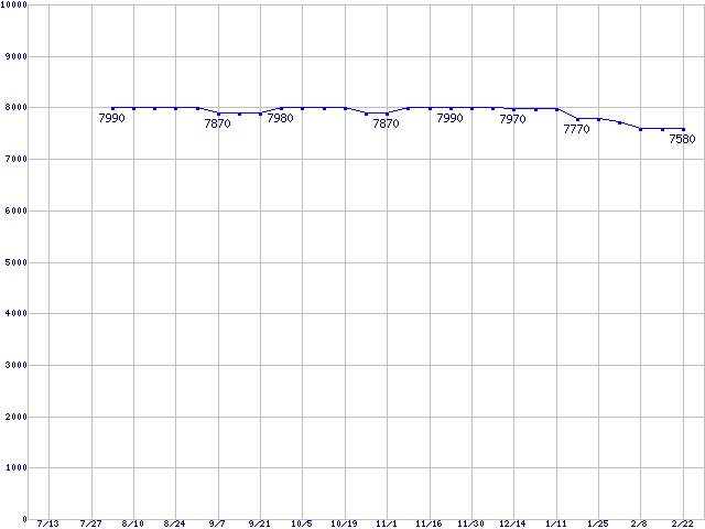 | SpinPoint (7200rpm,Ultra ATA/133,8MB)の最安値推移 | | | (2006年7月13日~2007年2月22日) |