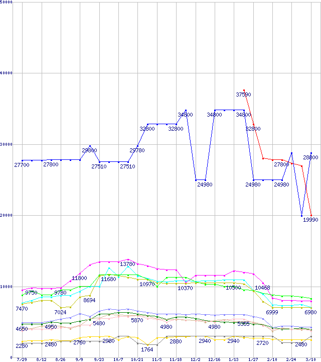 メモリ主要製品の最安値推移