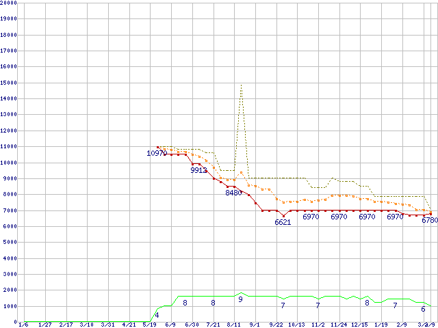 | Sempron 3200+ (1.8GHz,L2 128KB)の価格推移 | | | (2006年1月6日~2007年3月9日) |
