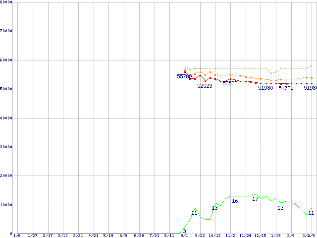 | Core 2 Duo T7400 (2.16GHz,L2 4MB)の価格推移 | | | (2006年1月6日~2007年3月9日) |