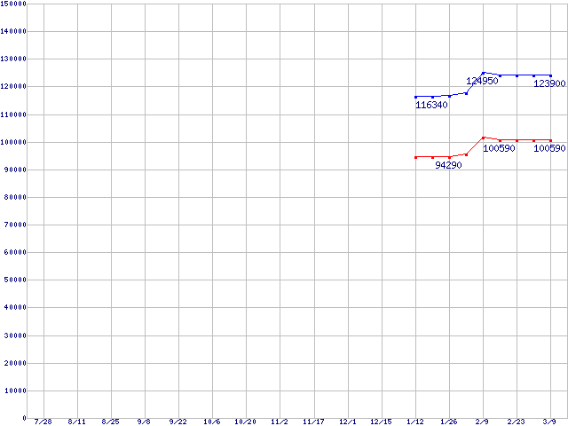 LGA771(FSB 1066MHz,Dual Core,L2 4MB)の最安値推移