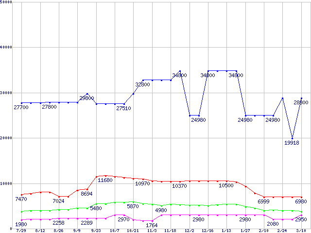 PC3200(DDR400) DDR SDRAM DIMMの最安値推移
