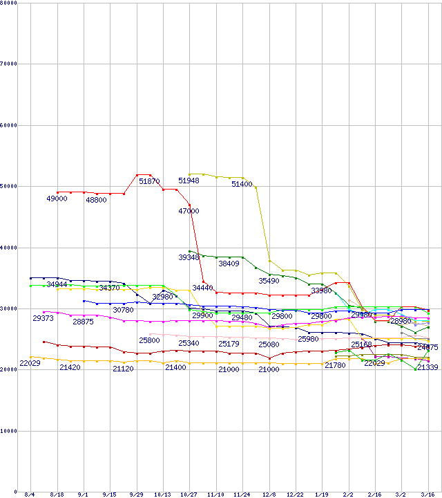 ※製品名をクリックすると個別のグラフを表示します ※点線部は販売店が確認できなかった、または調査データがないことを示します |