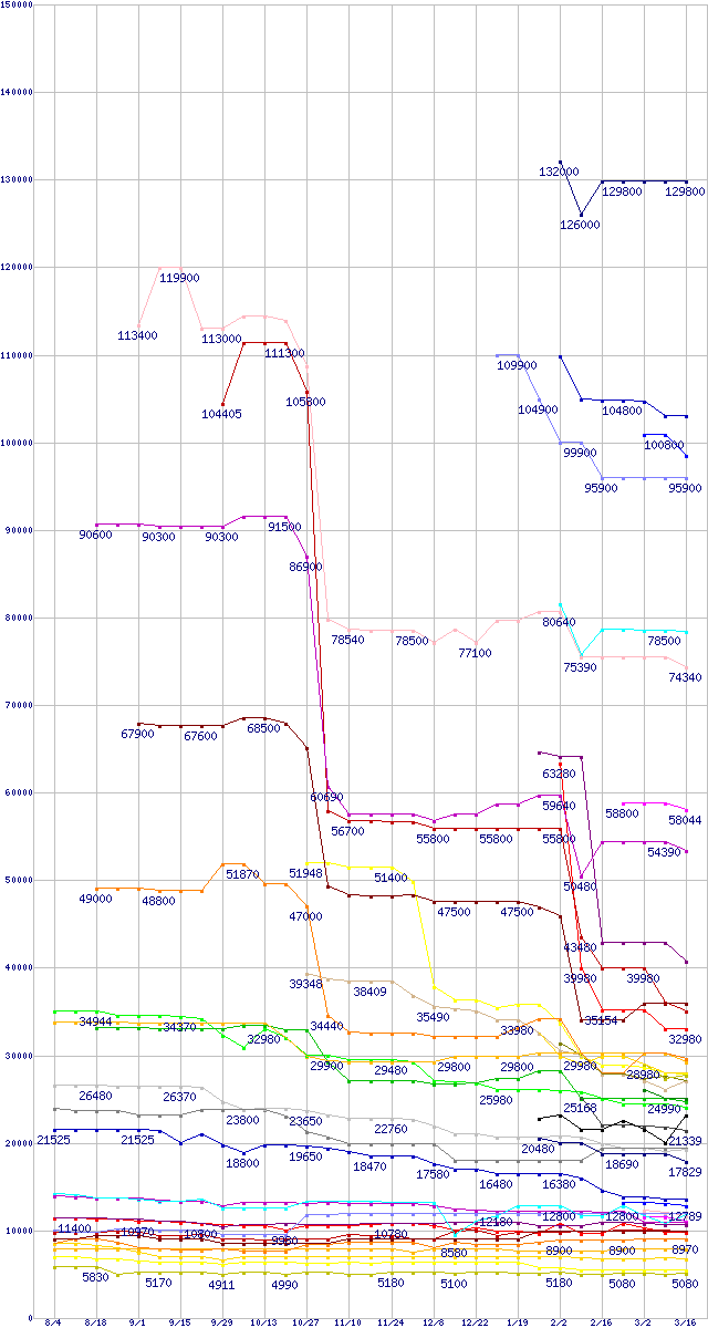 | AMD系CPUの最安値推移 | | | (2006年8月4日~2007年3月16日) |