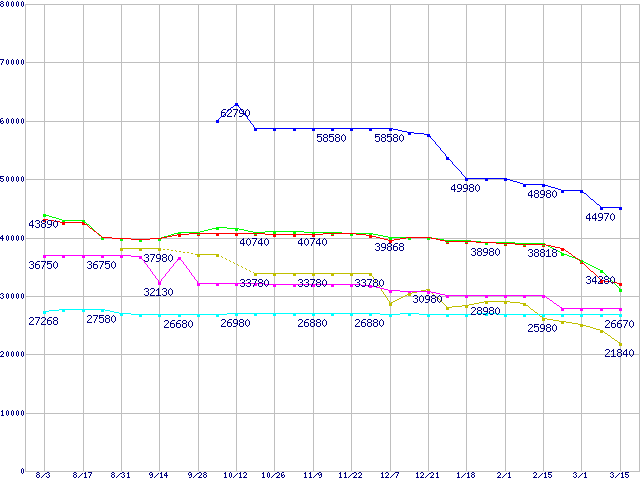 HDD主要製品(最安値1万5千円~2万円未満)の最安値推移
