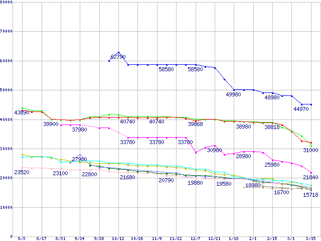 | HDD 500GB以上の最安値推移 | | | (2006年8月3日~2007年3月15日) |