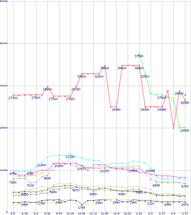 PC2-4200*(DDR2-533) DDR2 SDRAM DIMMの最安値推移