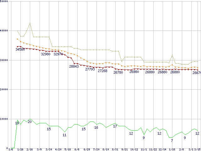 | WD1500ADFD (150.0GB)の価格推移 | | | (2006年1月6日~2007年3月15日) |