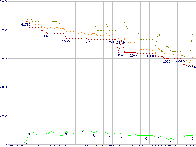 | WD1500AHFD (150.0GB)の価格推移 | | | (2006年1月6日~2007年3月15日) |