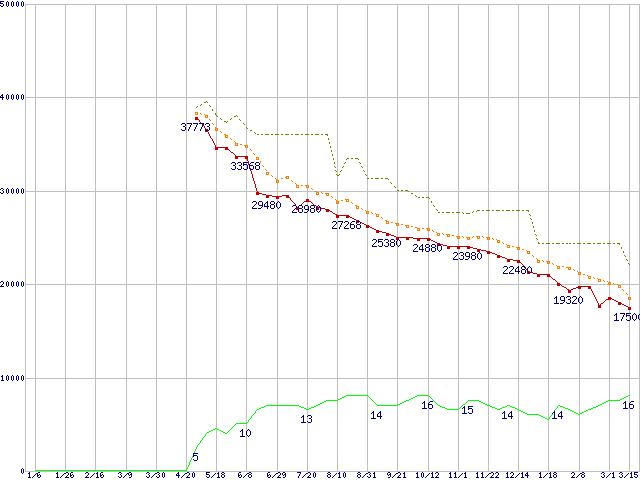 | ST3500630A (500GB,16MB)の価格推移 | | | (2006年1月6日~2007年3月15日) |