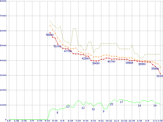 | ST3750640AS (750GB,16MB)の価格推移 | | | (2006年1月6日~2007年3月15日) |