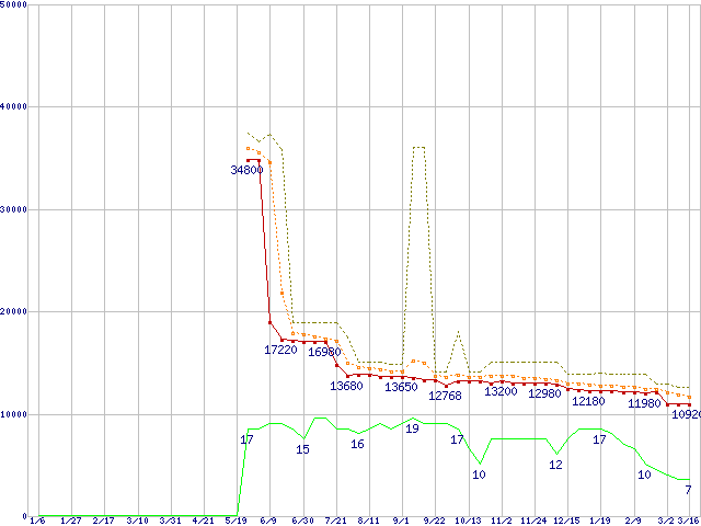 | Athlon 64 3800+ (2.4GHz,L2 512KB)の価格推移 | | | (2006年1月6日~2007年3月16日) |