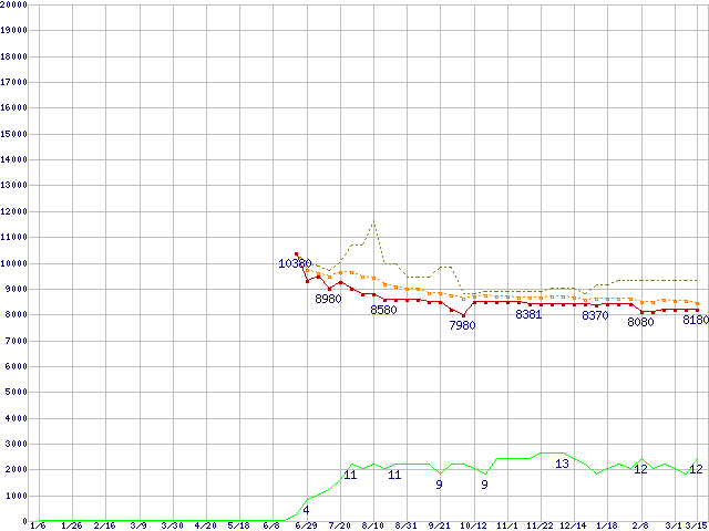 | ST3250820A (250GB,8MB)の価格推移 | | | (2006年1月6日~2007年3月15日) |
