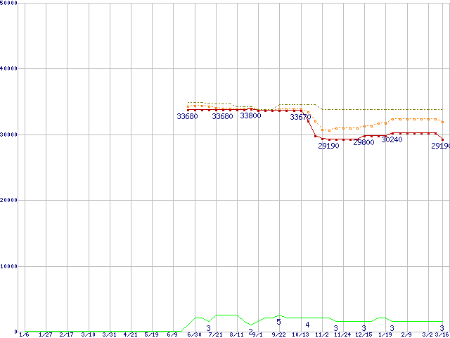 | Turion 64 X2 TL-56 (1.8GHz,512KB×2)の価格推移 | | | (2006年1月6日~2007年3月16日) |