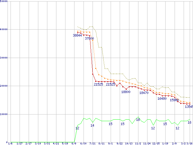 | Athlon 64 X2 3800+ (2.0GHz,L2 512KB×2,TDP65W)の価格推移 | | | (2006年1月6日~2007年3月16日) |