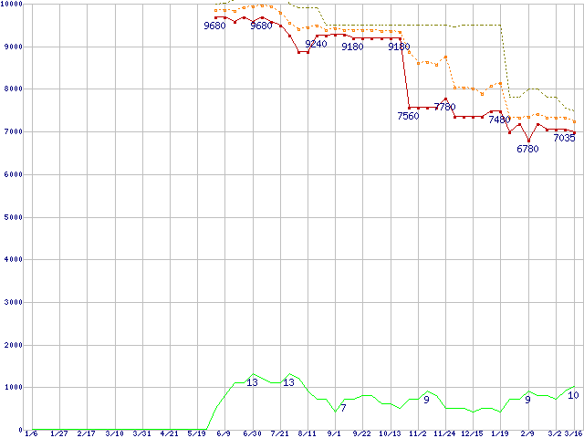 | Celeron D 352 (3.20GHz)の価格推移 | | | (2006年1月6日~2007年3月16日) |