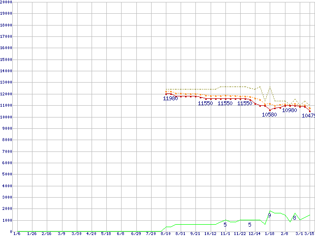 | ST3250620NS (250GB,16MB)の価格推移 | | | (2006年1月6日~2007年3月15日) |