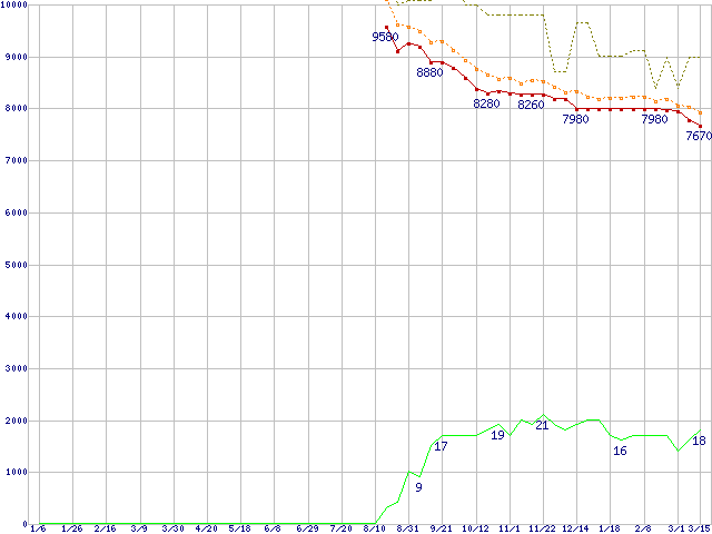 | HDT725025VLAT80 (250GB,8MB)の価格推移 | | | (2006年1月6日~2007年3月15日) |