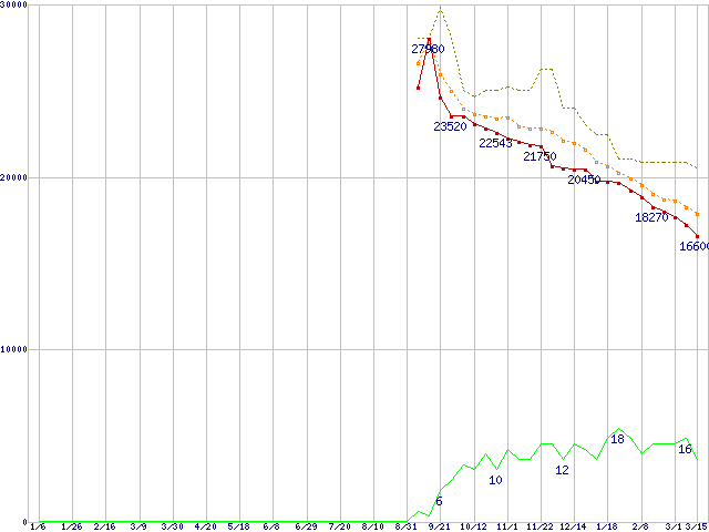 | HDT725050VLA360 (500GB,16MB)の価格推移 | | | (2006年1月6日~2007年3月15日) |