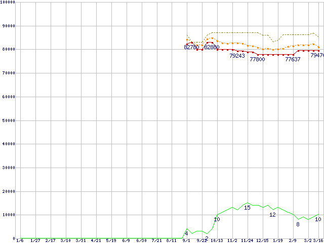 | Core 2 Duo T7600 (2.33GHz,L2 4MB)の価格推移 | | | (2006年1月6日~2007年3月16日) |