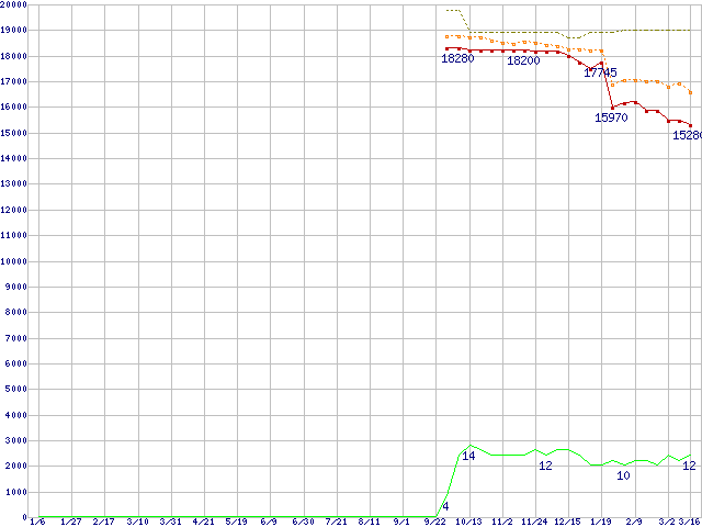 | Pentium D 925 (3.0GHz)の価格推移 | | | (2006年1月6日~2007年3月16日) |