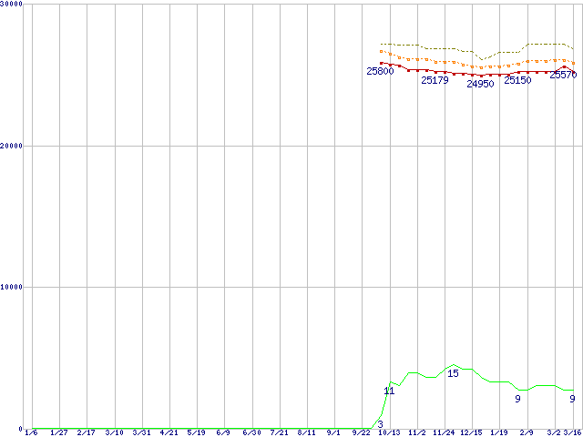 | Core 2 Duo T5500 (1.66GHz,L2 2MB)の価格推移 | | | (2006年1月6日~2007年3月16日) |