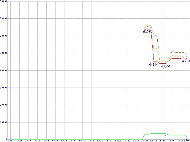 | Xeon E5310(1.60GHz)の価格推移 | | | (2006年1月6日~2007年3月16日) |