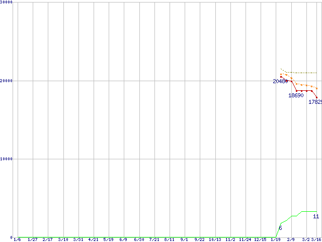 | Athlon 64 X2 4000+ (2.1GHz,L2 512KB×2,TDP65W)の価格推移 | | | (2006年1月6日~2007年3月16日) |
