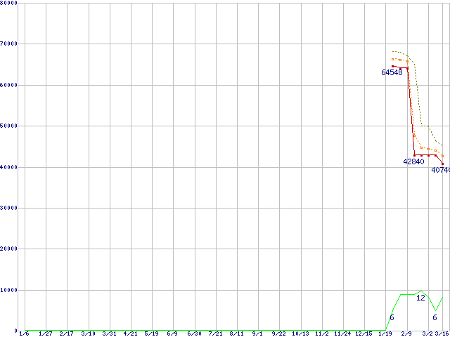 | Athlon 64 X2 5600+ (2.8GHz,L2 1MB×2)の価格推移 | | | (2006年1月6日~2007年3月16日) |