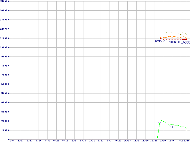 | Core 2 Quad Q6600 (2.40GHz,L2 4MB×2)の価格推移 | | | (2006年1月6日~2007年3月16日) |