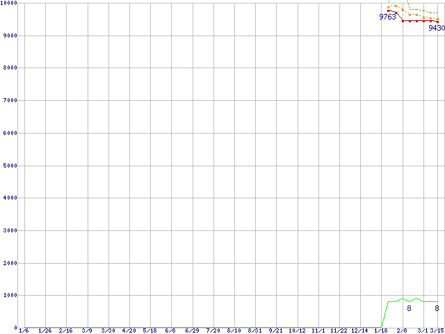 | HD321KJ (320GB,16MB)の価格推移 | | | (2006年1月6日~2007年3月15日) |