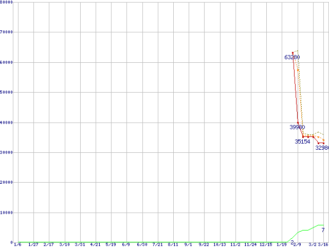 | Athlon 64 X2 5400+ (2.8GHz,L2 512KB×2)の価格推移 | | | (2006年1月6日~2007年3月16日) |