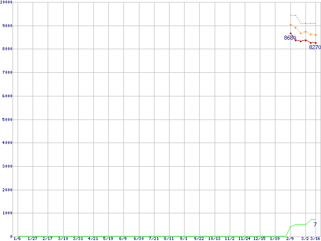 | Celeron D 360 (3.46GHz)の価格推移 | | | (2006年1月6日~2007年3月16日) |