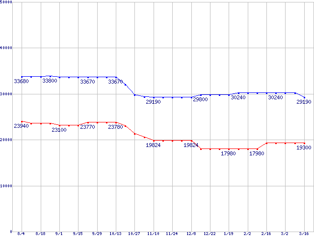 Socket F (FSB 1000MHz,Dual Core,L2 1MB×2)の最安値推移