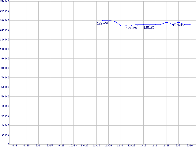 | LGA775 (FSB 1066MHz,L2 4MB×2,Quad Core,EM64T対応,TDP 130W)の最安値推移 | | | (2006年8月4日~2007年3月16日) |