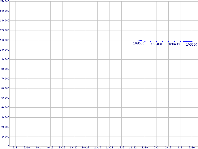 | LGA775 (FSB 1066MHz,Quad Core,EM64T対応,TDP 105W)の最安値推移 | | | (2006年8月4日~2007年3月16日) |